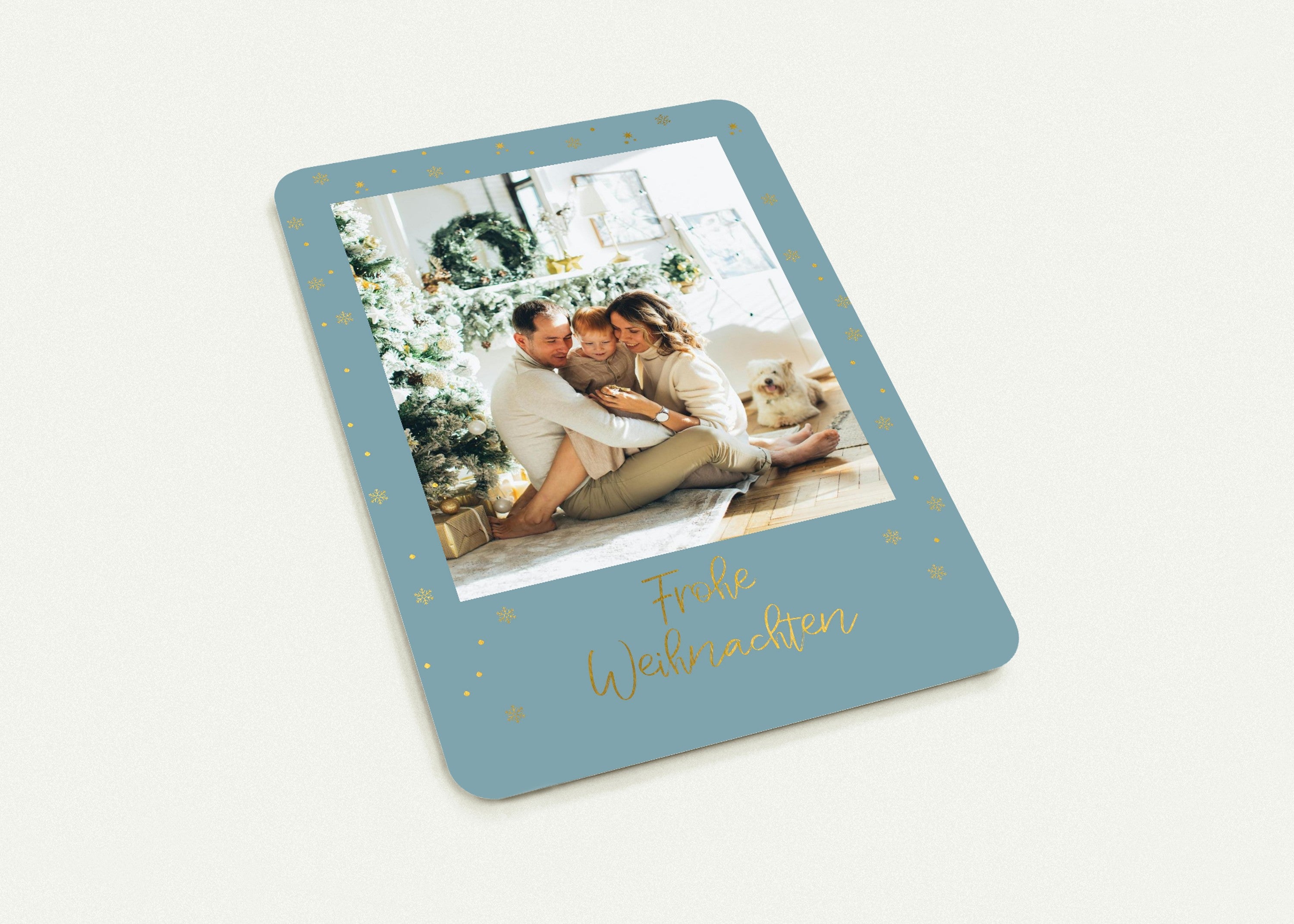 Weihnachtskarten mit Foto online gestalten - Verschicke persönliche Weihnachtsgrüße mit deinen schönsten Familienmomenten. Premium Postkarten für Weihnachten in Hochformat oder Querformat, optional mit edler Folienveredelung.